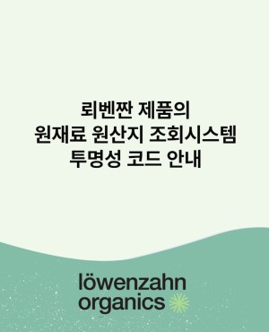 뢰벤짠 오가닉스는 고객께 더욱 신뢰할 수 있는 제품을 전달하고자 주요 원재료의 원산지를 투명하게 공개하고 있는 시스템인 '투명성 코드'를 운영 중에 있습니다. &nb..